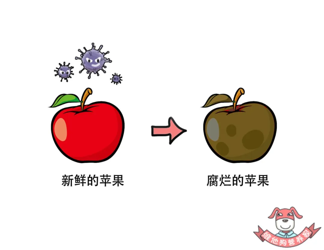 空气中的细菌无处不在,落在食物上,用食物的养分繁殖生长,食物就会腐烂。