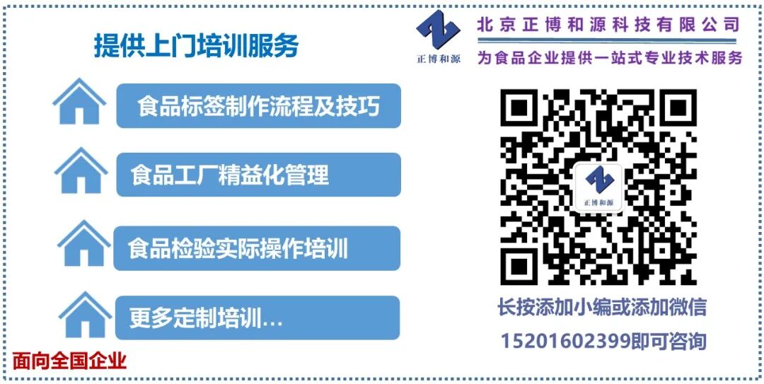 食品企业审核食品标签、办理生产许可、企标备案、定制各类培训,欢迎拨打电话15201602399或咨询微信公众号!在微信搜索“食品安全与管理服务”关注本公众号,并可在“进入公众号”页面选择将本公众号置顶。