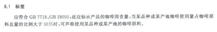 如GB/T30767中要求标签中应标示产品咖啡因含量等: