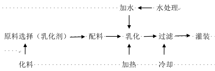①原料、食品添加剂选择,② 配料,③ 乳化条件,④加水量(加水型)