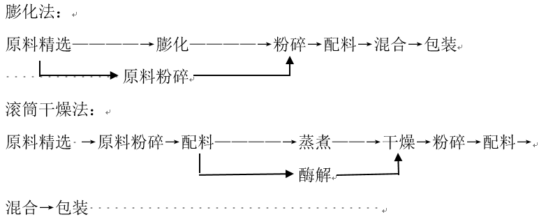 原料精选;配料;酶解;蒸煮;干燥;混合;包装。