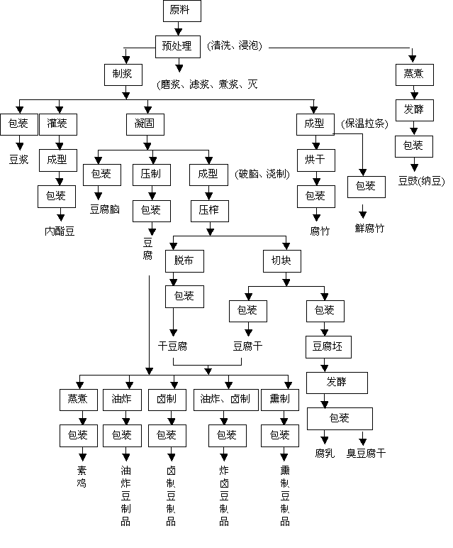 豆制品是指以大豆或其它杂豆为原料经加工制成的产品。根据加工工艺的不同分为发酵性豆制品和非发酵性豆制品两大类。